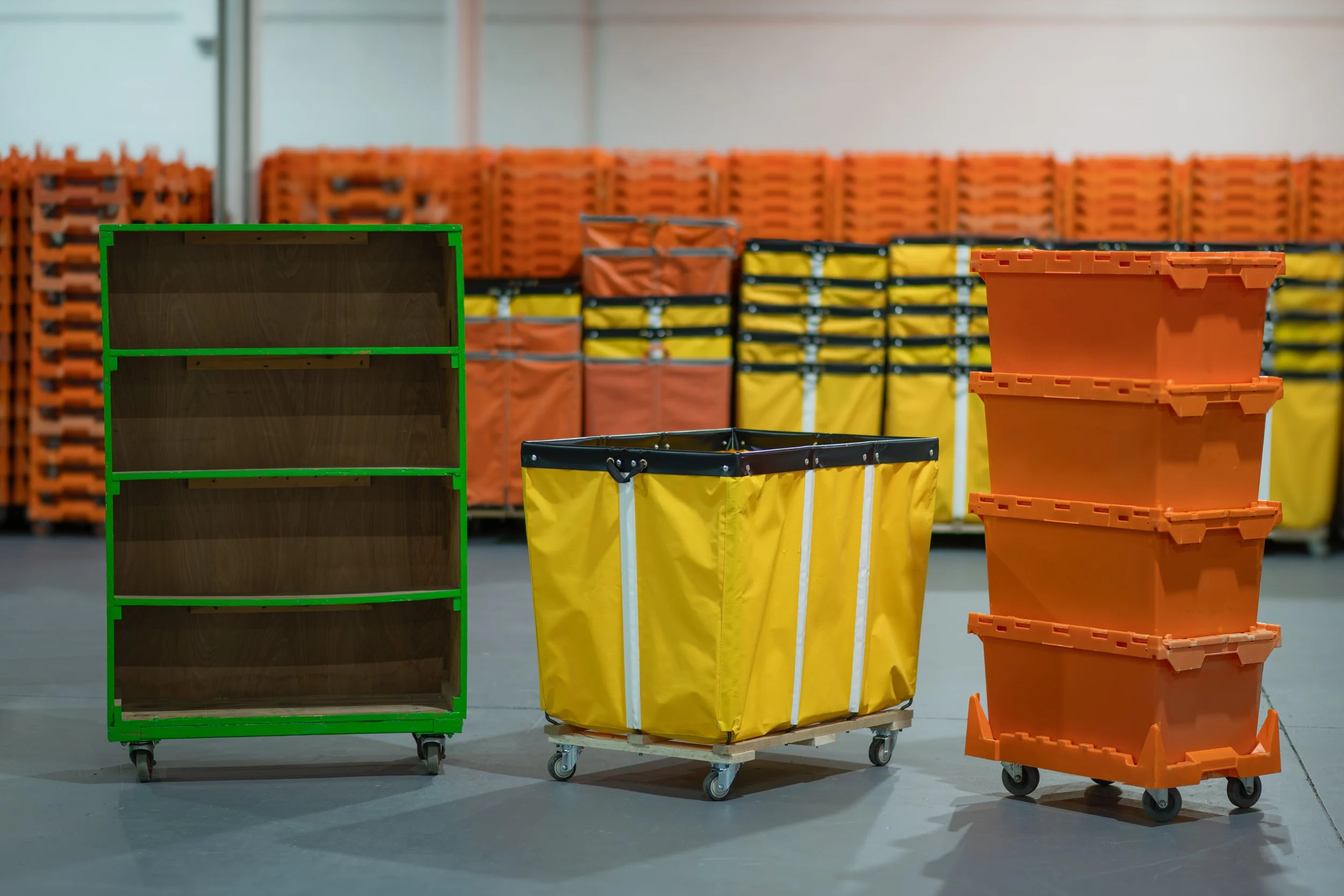 • Tall, wheeled containers designed to quickly move large quantities of boxed items, supplies, or loose materials. Built to streamline packing and loading.