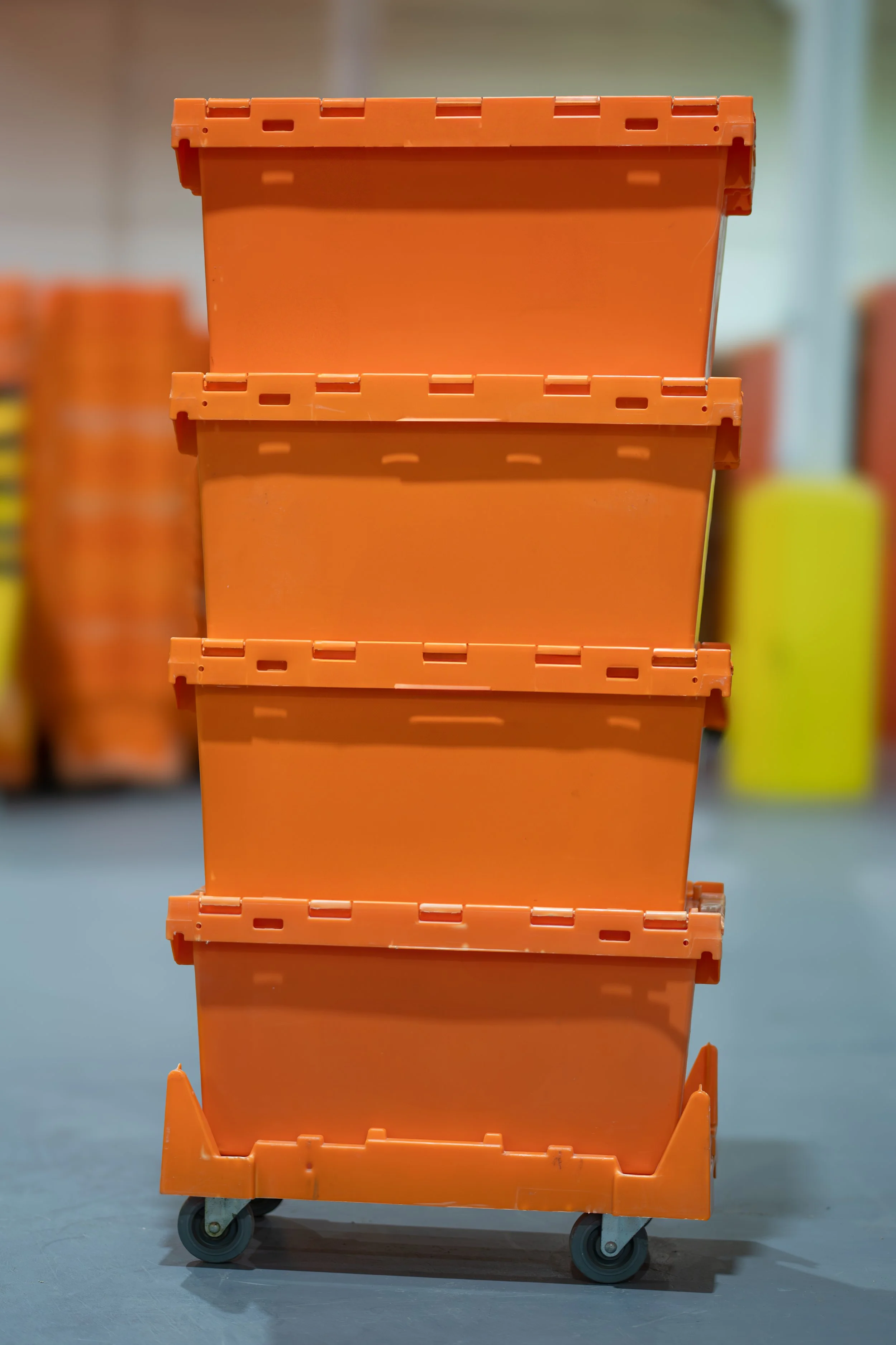 Our classic orange eCrates are the proven, heavy duty option for high volume moves, featuring durable stackable construction, secure locking lids, and a bottom up loading approach that reduces strain and speeds up packing.